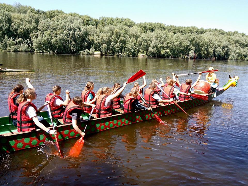 Діти спробували себе в ролі веслярів на човнах-драконах (човен-дракон або драгонбот — велике 20-місне каное, з головою та хвостом дракона. Попереду сидить барабанщик, який б'є у великий барабан, задаючи ритм веслярам - Авт.). Усім без винятку – і дітям, і дорослим – це заняття сподобалося. Після цього були різноманітні ігри та смачний обід. Набігавшись берегом річки, дітлашня уплітала куліш за обидві щоки. Додому автобус віз стомлених, але радісних дітей.
