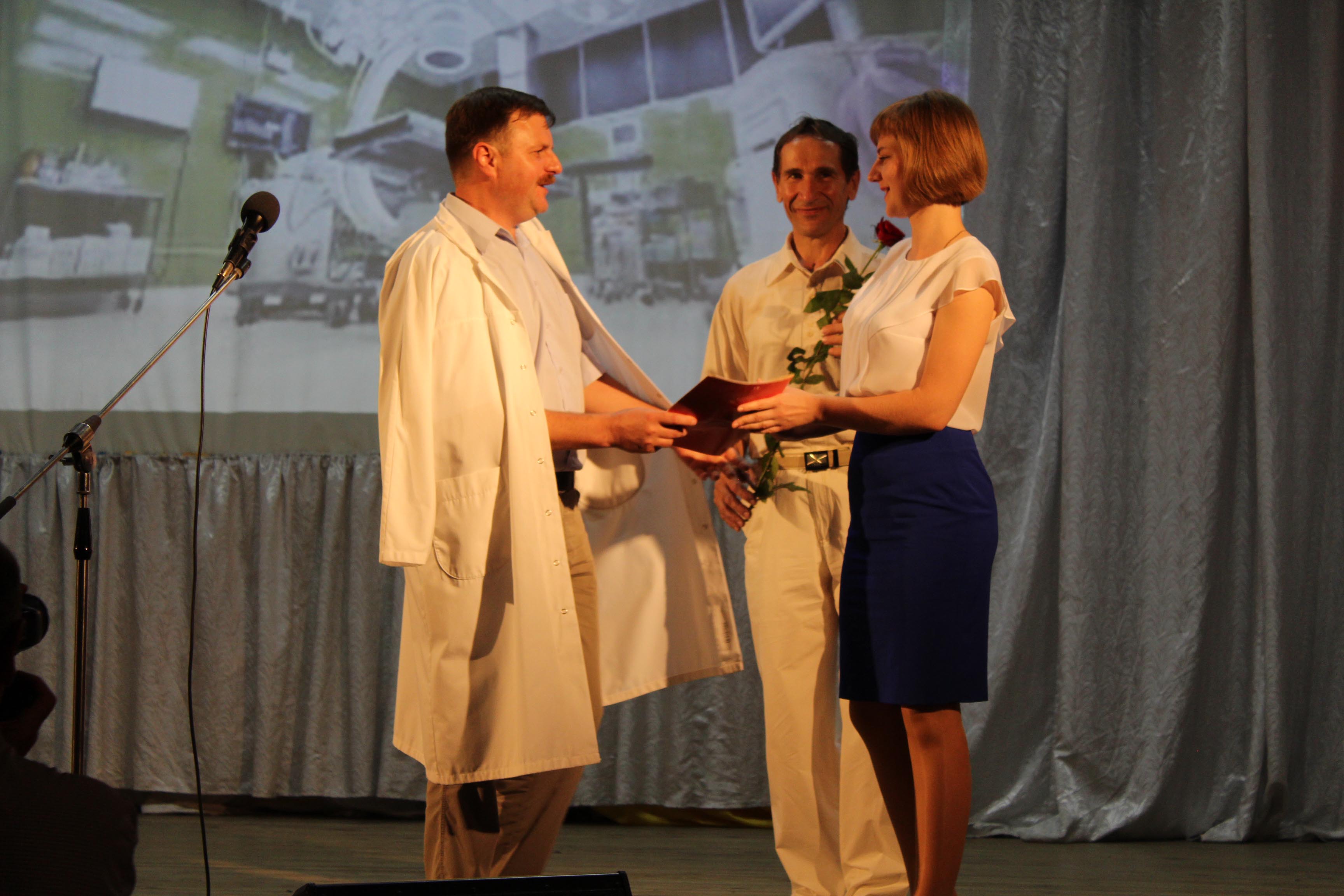 Зі сцени урочисто привітали весь медичний персонал центральної районної лікарні, швидкої допомоги, центру первинної медико-санітарної допомоги. Від Козелецької селищної ради з рук її голови Олени Дмитренко Почесні грамоти отримали: