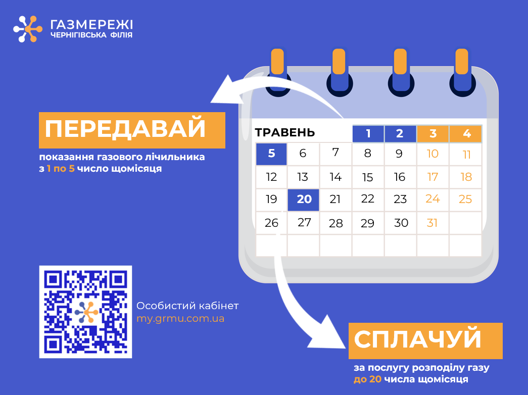 1–5 числа щомісяця — передача показань газових лічильників