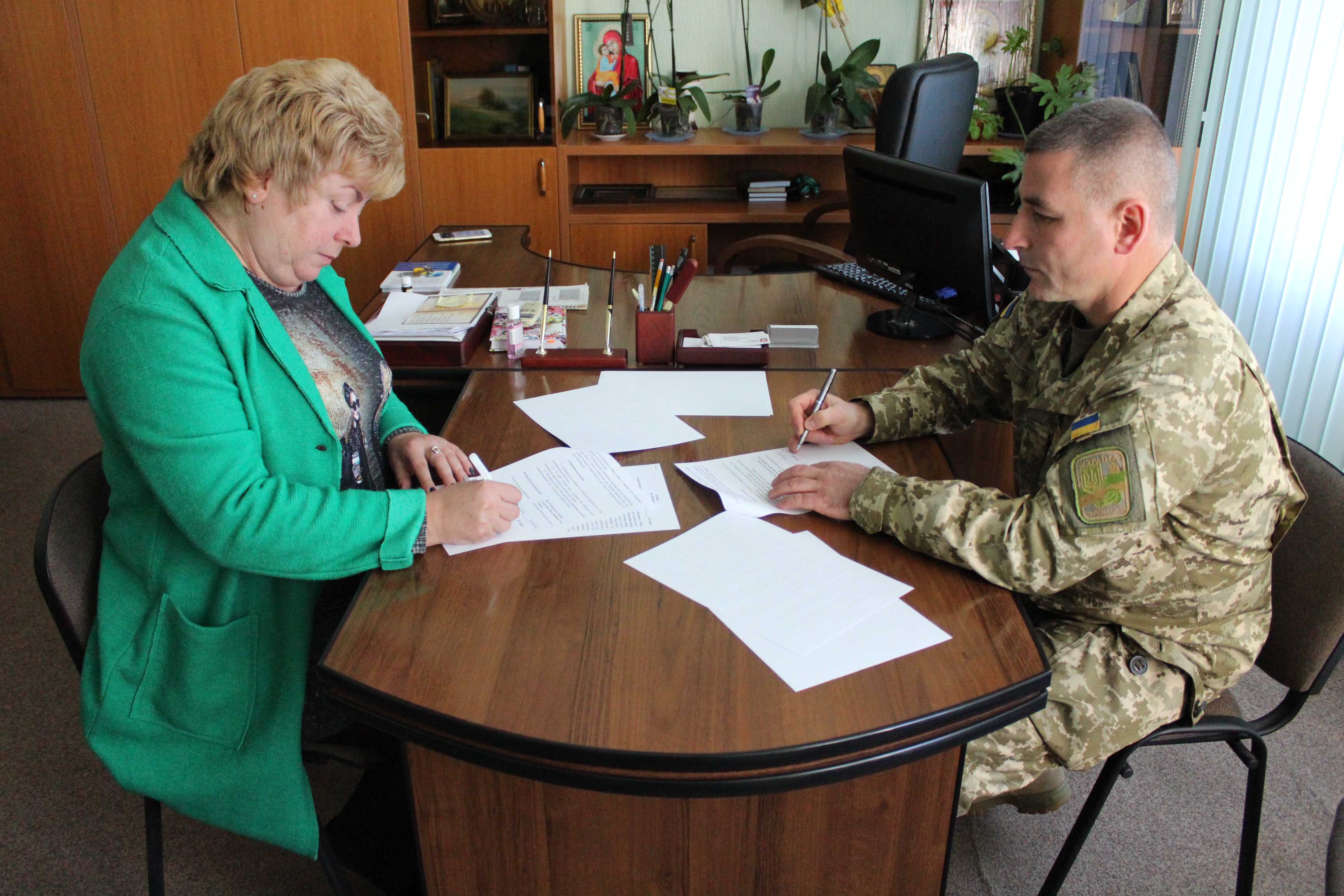 - Меморандум, який ми підписали сьогодні, є першим кроком до порозуміння, - відповів Віктор Дмитрович. – Будь-який керівник, чи то військовий, чи цивільний, він як директор великого холдингу, і його головне завдання – це успішне існування цього підприємства. Я говорю про забезпечення людей роботою. Ми, військові, теж маємо певні вміння і навички, які представляємо на ринку праці, тобто для захисту своєї країни. І кожен військовослужбовець має бути соціально захищеним, користуватися всіма тими правами і пільгами, які передбачає держава. Тому я, як керівник маю надати робочі місця для військових, а також посприяти їм у соціально-побутових питаннях, щоб мій 169 Центр існував і розвивався. Тому даний меморандум є кроком до розвитку Навчального центру.