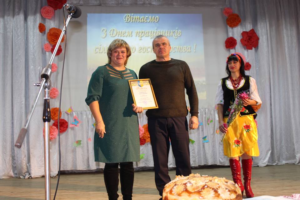 - Саме аграрний сектор економіки є базовим у нашій Козелецькій громаді, - зазначила Інна Ярошенко. – Тому ми націлені на співпрацю із сільгоспвиробниками. І сьогодні я вітаю усіх причетних до обробітку землі, до вирощування худоби й птахів, усі ви достойні великої подяки від нас, споживачів продукції. Низький вам уклін! Сьогодні до Дня працівників сільського господарства я маю честь нагородити Почесною грамотою Козелецької селищної ради Сергія Погребовського, директора фермерського господарства «Лемеші-Агро».